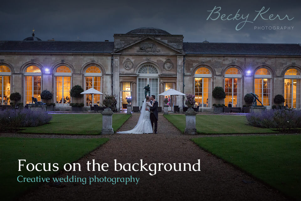 Sometimes less is more, and for a really interesting wedding photo, pull back and make the most of the space around the couple.
