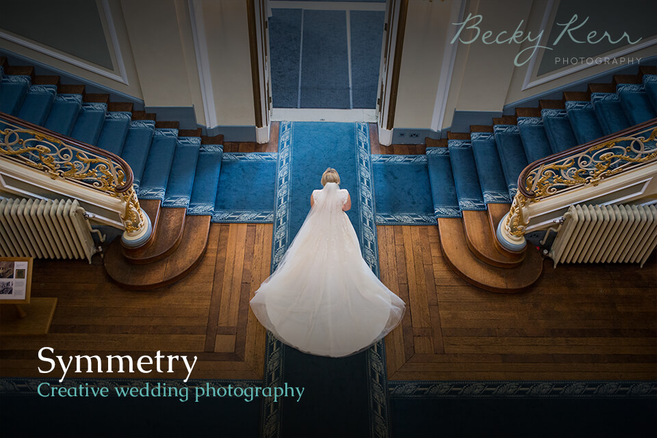 Another way to use symmetry is to find it in the landscape and background. When you have perfect balance as a backdrop, it really pulls the subject into focus, and makes for a fabulously innovative photo that makes your bride or groom the centre of attention.