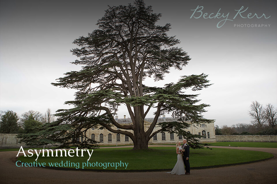 By bringing the surroundings into the picture, it inverts your expectations of a wedding photo creating a really artistic style that also gives a sense of intimacy between the bride and groom.